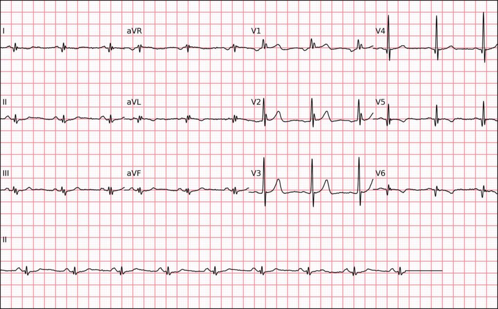 A condução AV variável pode ocorrer espontaneamente ou ser induzida por drogas que alteram a refratariedade do nodo AV (como betabloqueadores, bloqueadores de canal de cálcio ou digoxina). Nessas situações, o intervalo RR torna-se irregular, mas a atividade atrial continua regular — a chave para o diagnóstico correto.