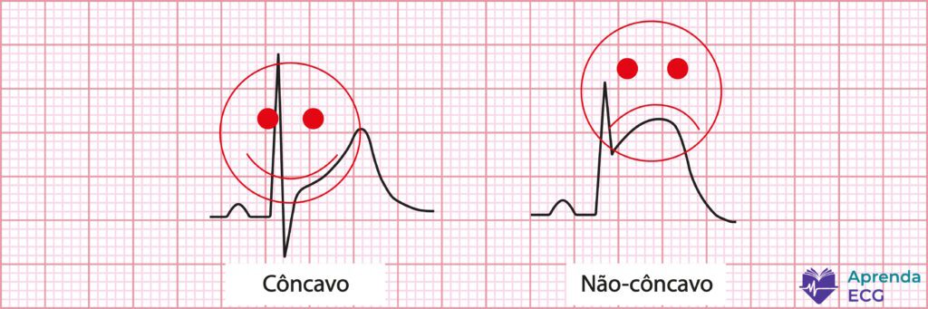 Diversos estudos já mostraram que a morfologia do ST, isoladamente, não é capaz de diferenciar com segurança isquemia de causas não isquêmicas. Um trabalho clássico de Smith et al. demonstrou que a morfologia côncava do supradesnivelamento do ST esteve presente em até 43% dos pacientes com oclusão aguda da artéria descendente anterior, desmontando a ideia de que o formato “em sorriso” seria protetor.