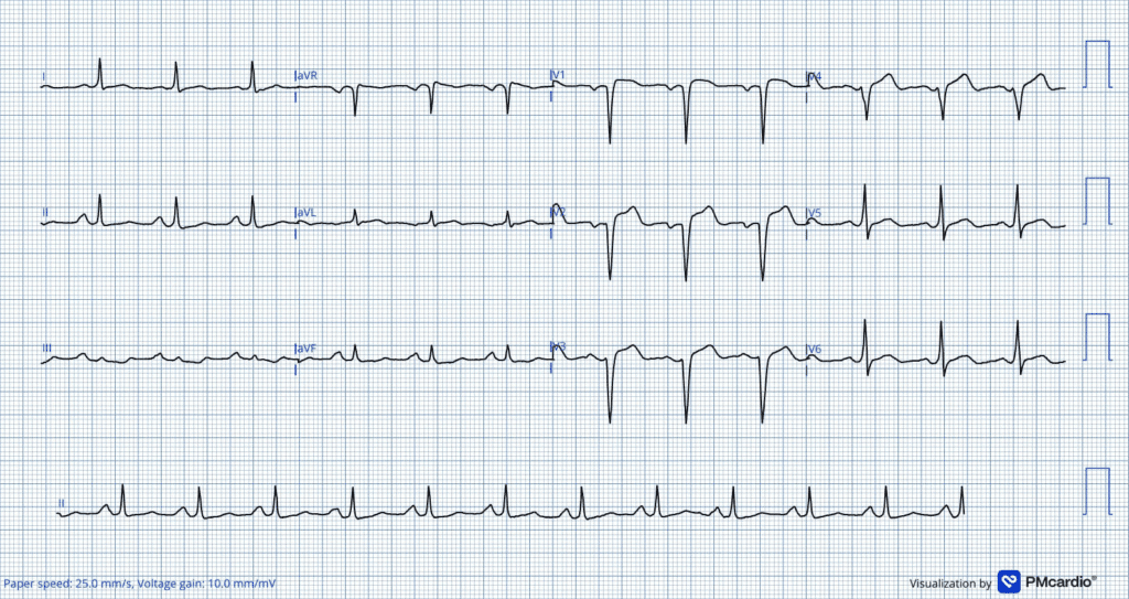 - Onda R proeminente em aVR (Sinal de Goldberger) pode estar presente