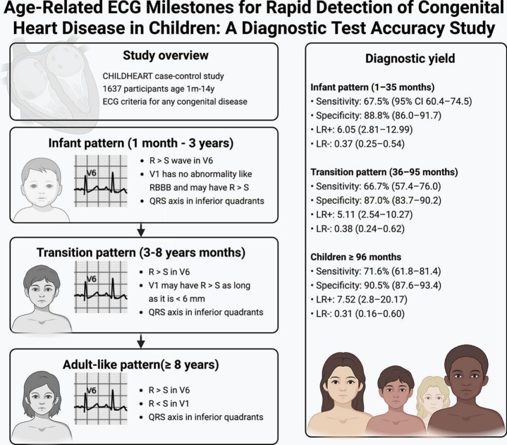 1. de Alencar JN, Costa IR, Monteiro JAM, Furtado JT, Sacre RC, Guerra CB, et al. Age-related ECG milestones for rapid detection of congenital heart disease in children: A diagnostic test accuracy study. Journal of Electrocardiology. 2025.