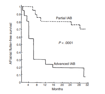 Sobrevida livre de FA/Flutter em pacientes com Bloqueio Interatrial Avançado versus BIA Parcial.